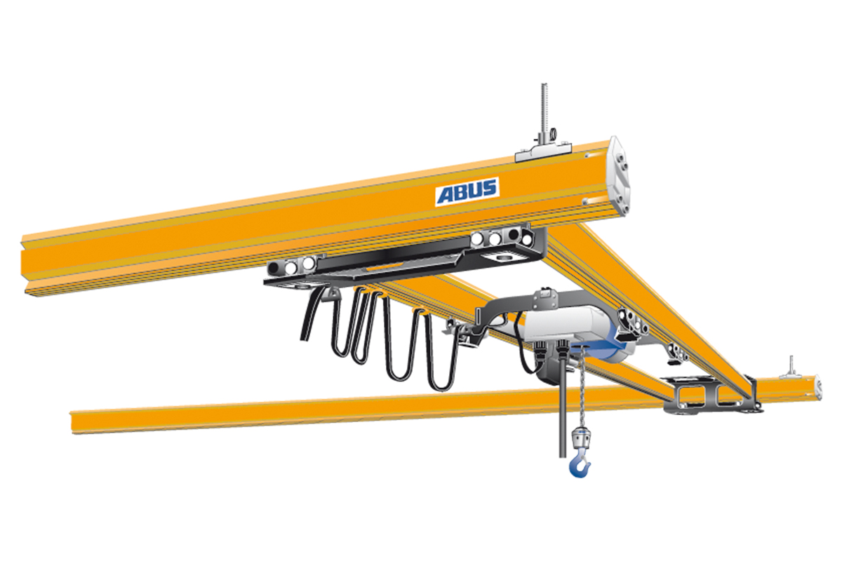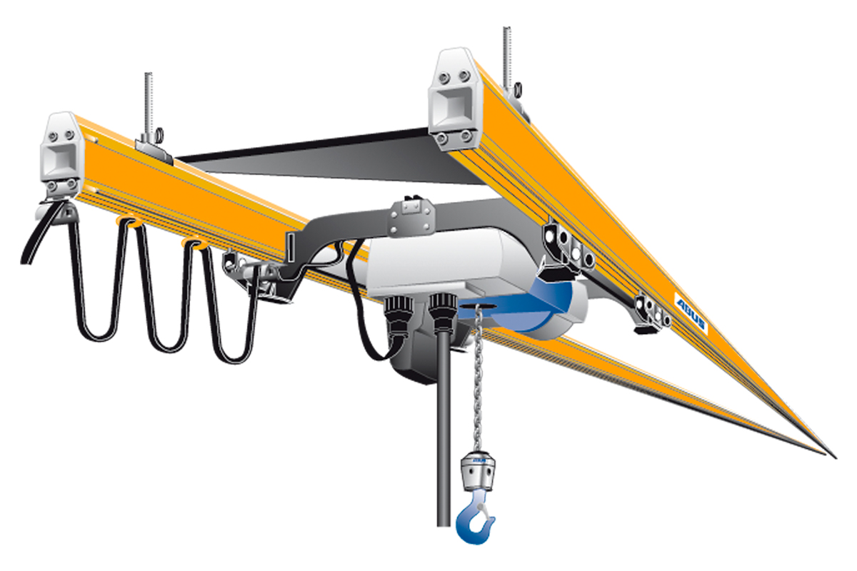 - Подъемник установлен между балками крана для очень выгодной высоты подъема