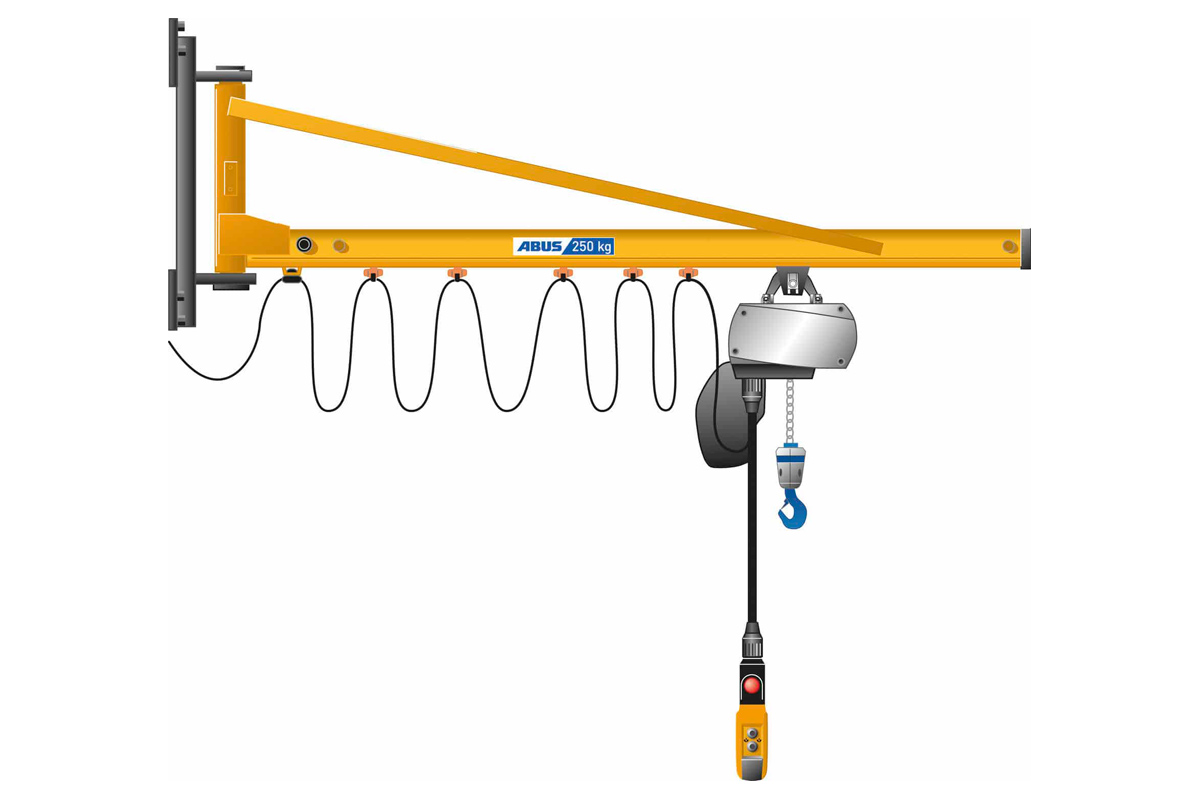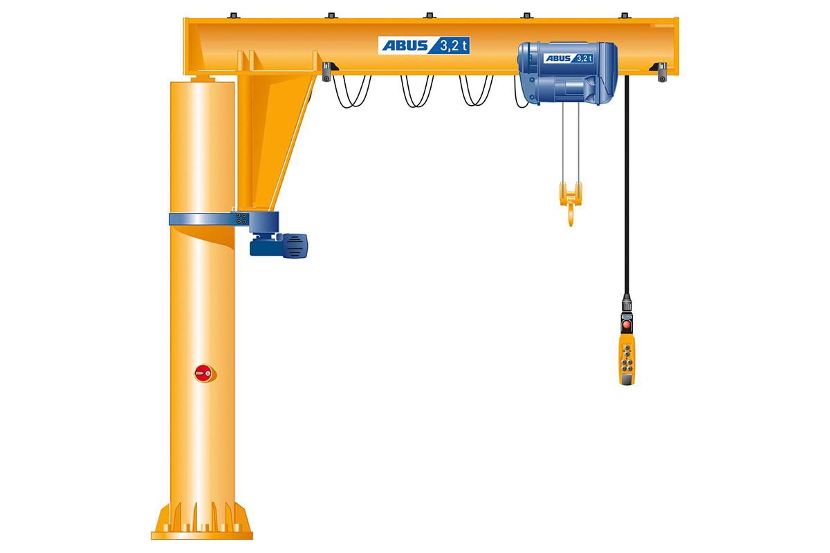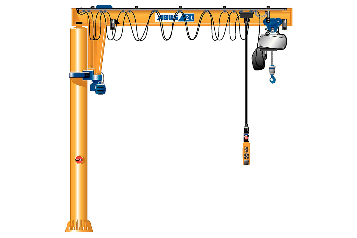 - На ілюстрації показаний кран з електричним поворотним механізмом, електричним візком та дистанційним керуванням.