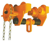 Подъемный механизм приводится в действие бесконечной калиброванной сварной цепью 7, огибающей тяговое колесо 5. Таль снабжена дисковым грузоупорным тормозом 6, встроенным в тяговое колесо. Грузоподъемность шестеренных талей составляет 0,25—10 т, а КПД —0,7—0,9. Кроме червячных и шестеренных талей с приводом от тягового колеса применяют тали с приводом от качающейся рукоятки.