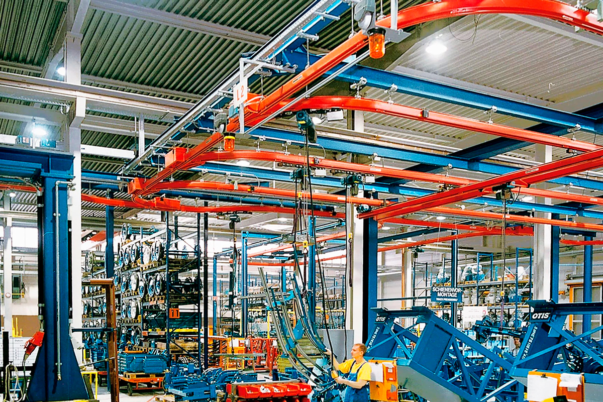 - Эффективное использование мастерской (например, мастерские, добавленные позднее, также могут обслуживаться без необходимости установки дополнительного подкранового пути)