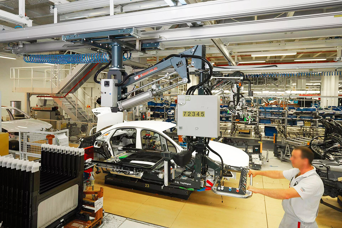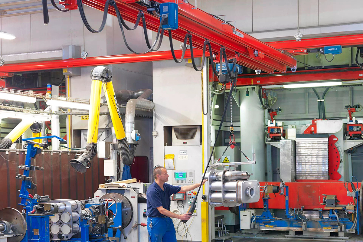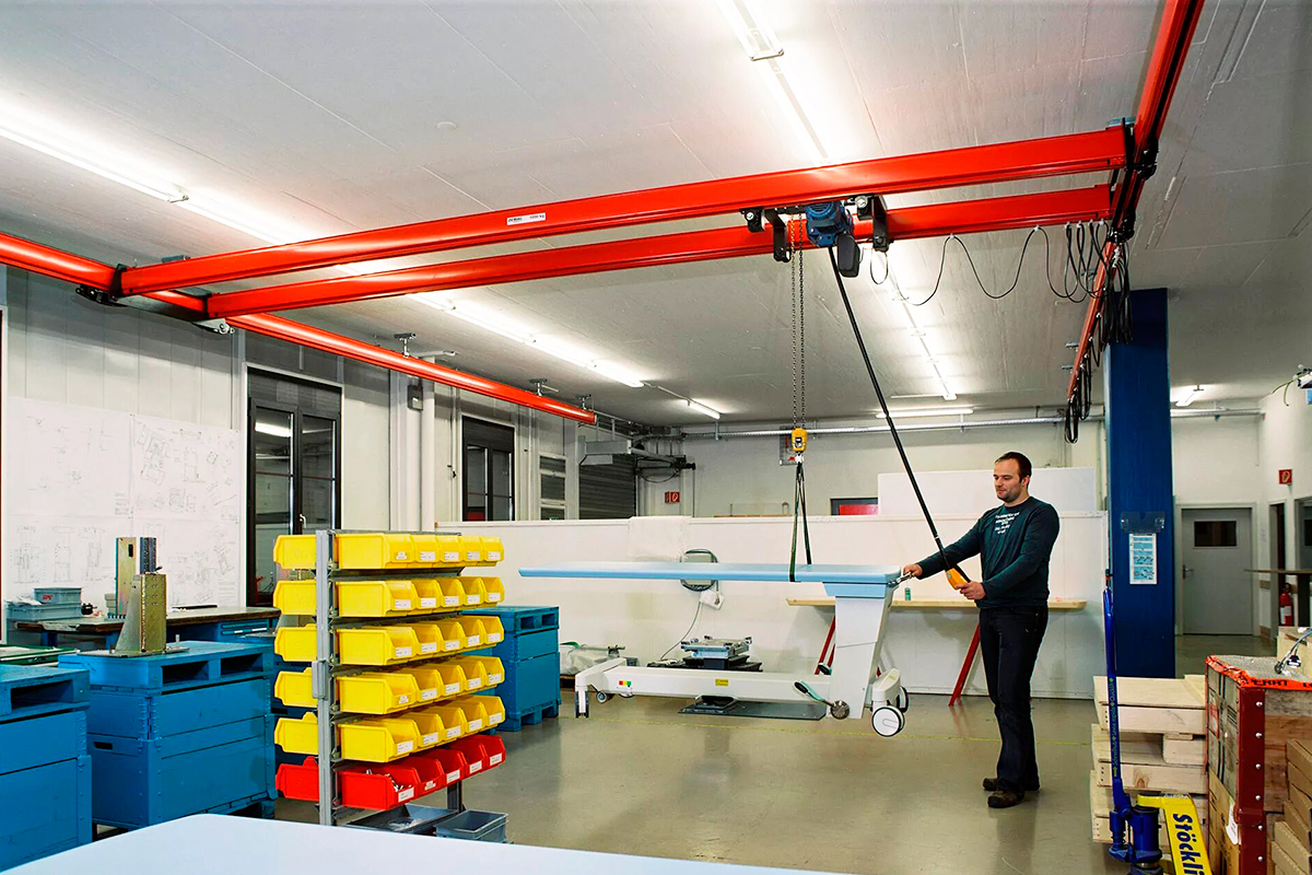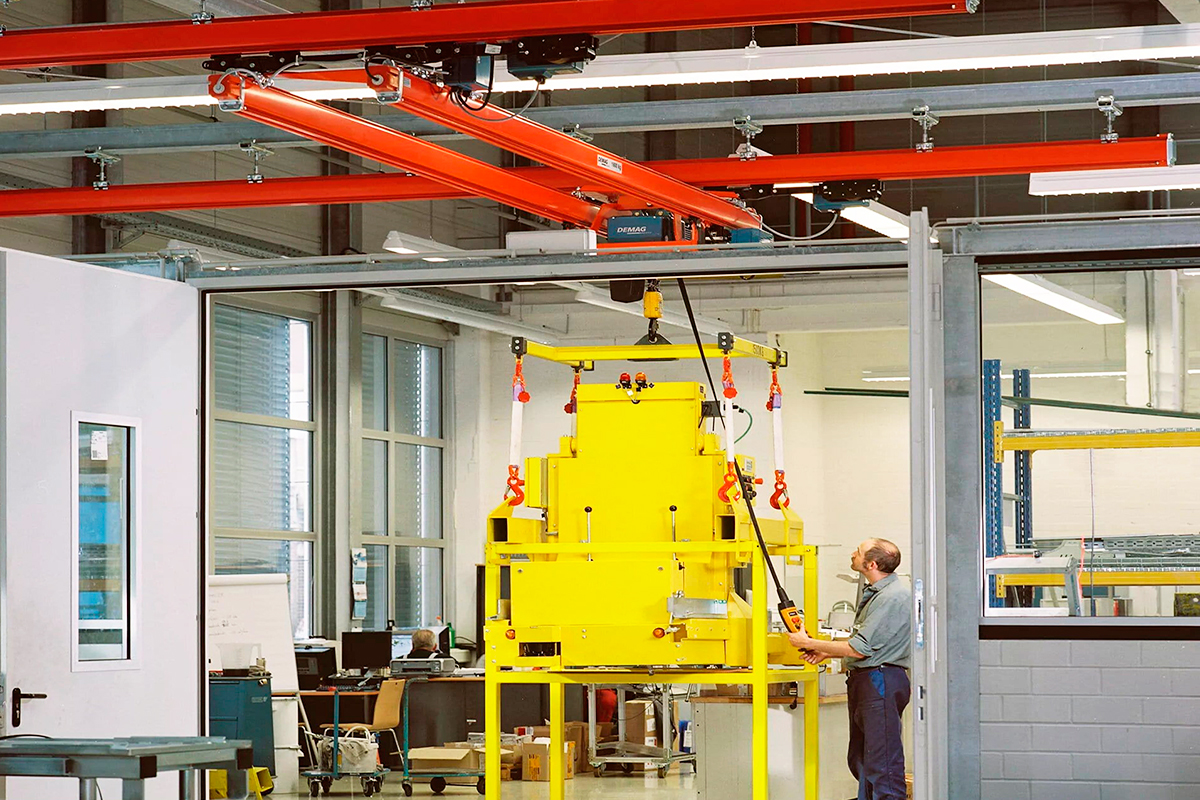 - Існуючі двобалкові підвісні крани KBK можна перетворити на крани-маніпулятори за допомогою компонентів KBK ergo