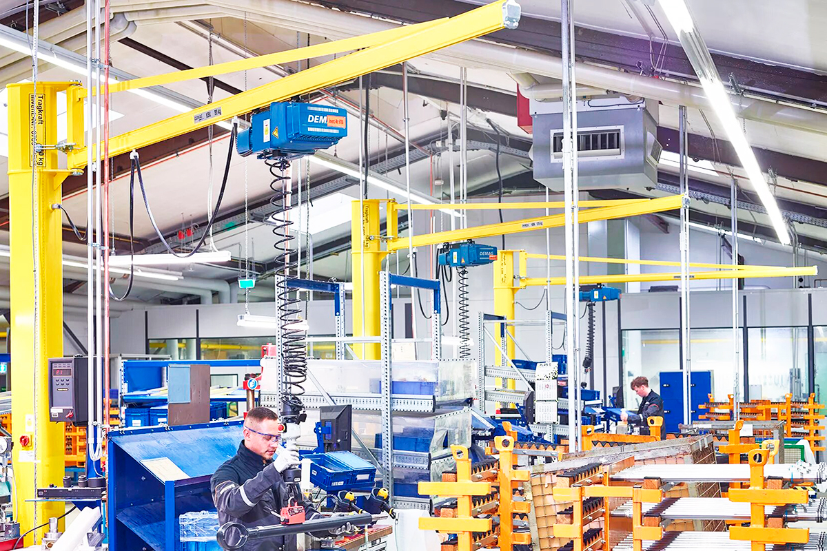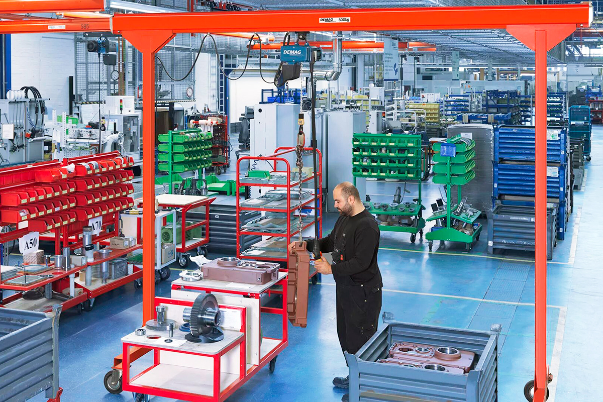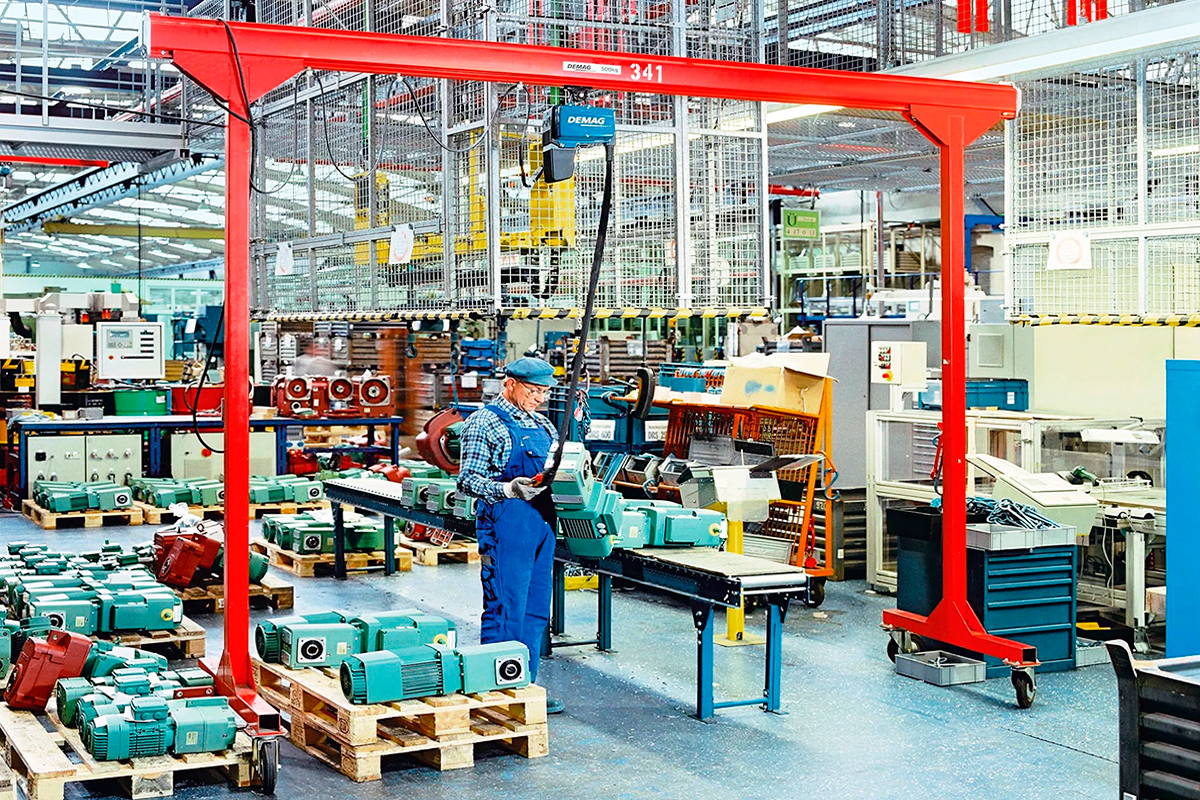 - Оптимальное использование доступной высоты и пространства благодаря компактной конструкции передвижного подъемника и большому пути крюка.