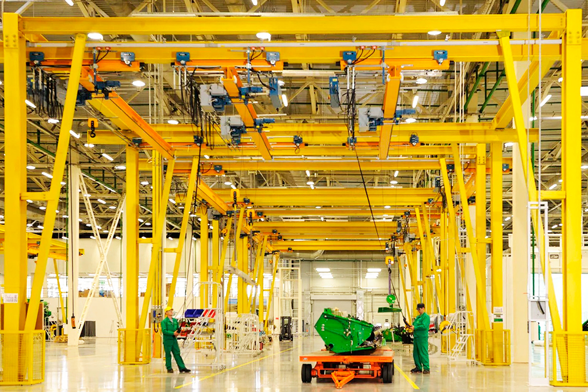 - Небольшой собственный вес снижает объем капиталовложений — подкрановые балки изготовлены из коробчатых профилей, оптимизированных с помощью компьютерных технологий.