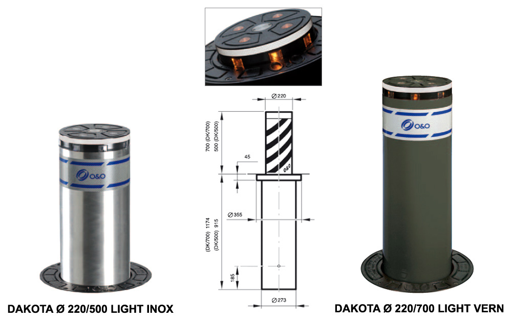Все эти варианты оснащены колпаком с высокоинтенсивным диодным светом, видимым днем и ночью (DAKOTA Ø220/500 light и DAKOTA Ø220/700 light).