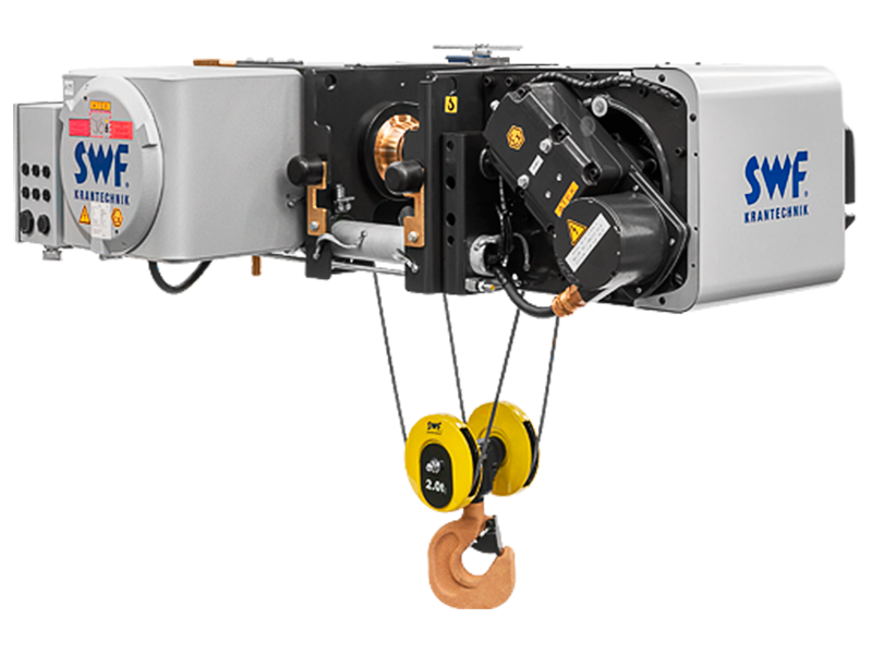 NOVAex отличается компактной конструкцией, минимальными размерами крюка и лучшими характеристиками, включая взрывобезопасность. Очень большой диаметр канатного барабана обеспечивает бережное отношение к несущему канату. Кроме того, тормоза и смазка подъемного механизма рассчитаны на весь срок службы.