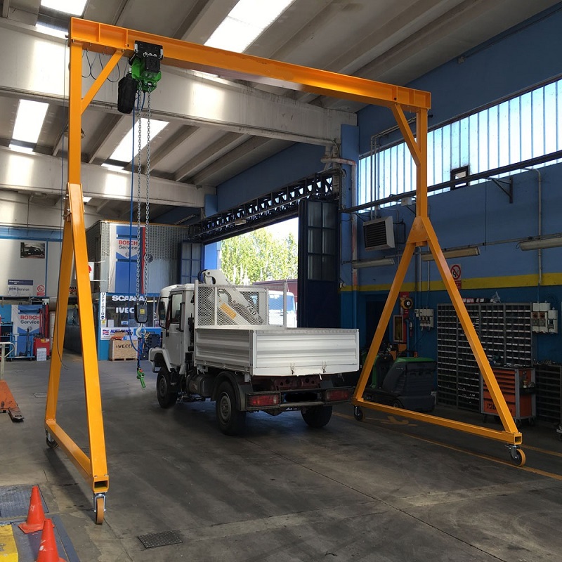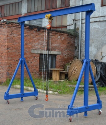 TYPICAL DESIGN OF LIGHT MANUAL GANTRY CRANES Gantry manual crane consists of two vertical supports with braces, between which a horizontal beam is fixed. The main bearing elements may have a different configuration. For racks, tubular or box-shaped structures are mainly used, often of a telescopic type. An I-beam or a pipe of round or rectangular section is installed as a bearing bridge.