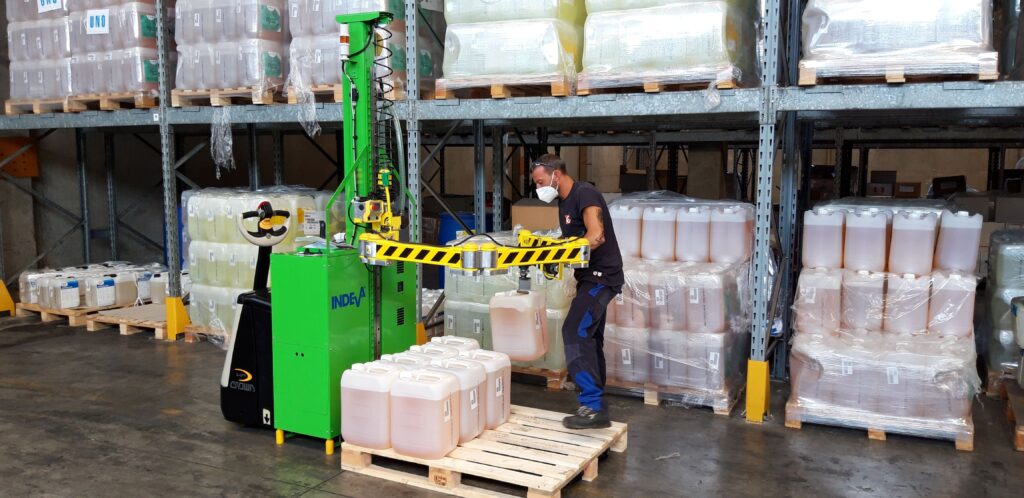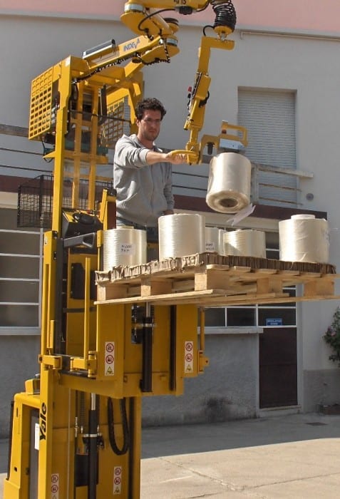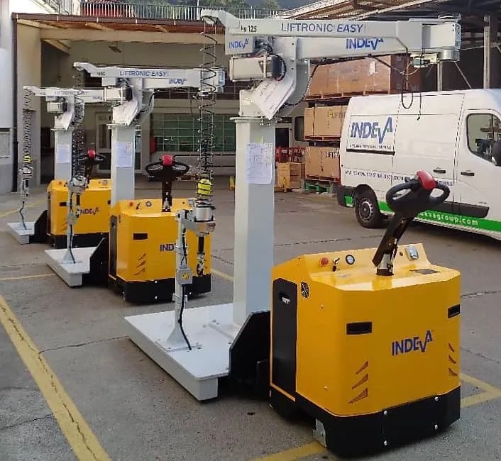 INDEVA ® Liftruck – это промышленный манипулятор, включающий штабелер для переноски поддонов с катушками, INDEVA ® Liftronic ® с шарнирным манипулятором и орбитальную головку инструмента для обработки катушек. Необходим в текстильной промышленности на участках текстурирования, прядения и ткачества для погрузки катушек высотой до 5 м с катушками весом до 40 кг. Один человек может выполнить весь рабочий цикл: собрать поддоны со склада и перенести их в катушку, разместить катушку перед поворотом на 90°, собрать и перенести все трубы и разделить заготовки коробок. Оператор может быстро и точно подобрать и освободить катушки с помощью орбитальной головки инструмента с расширительным патроном. Освобождение разрешается только тогда, когда катушка находится на штифте. Электронный балансировщик INDEVA ® обеспечивает плавное, быстрое и точное обращение с катушками. INDEVA ® Liftruck также может использоваться для обработки картонных коробок с помощью вакуумного захвата.
