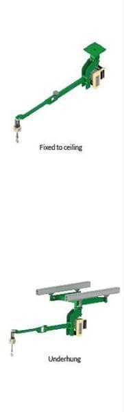INDEVA ® Liftronic ® Pro с шарнирным рычагом , устанавливаемым на потолке или на подвесной рельсе . Это решение подходит, когда нет возможности использовать пространство на полу для установки на колонну или необходимо охватить большую площадь.
