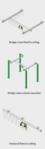 Модель Liftronic® Easy, устанавливаемая на рельсе, скользит по рельсам, установленным на подвесном мосту. Она подходит для покрытия большой рабочей зоны.