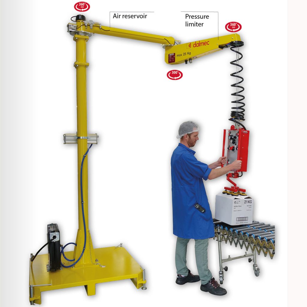 Уравновешивание веса перемещаемого груза осуществляется при помощи пневматического цилиндра связанного с трансмиссионной системой. Управление усилием цилиндра осуществляется по двум специальным пневматическим контурам: один из них обеспечивает поддержание в сбалансированном состоянии веса механизма захвата груза и трансмиссионной системы, а второй обеспечивает постоянное сбалансирование веса груза.