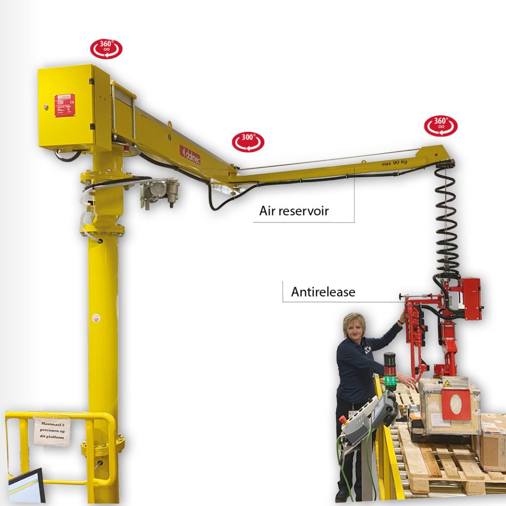 Уникальный манипулятор Posiplus оснащен захватным приспособлением, связанным с блоком балансировки через независимые стальные тросы, что позволяет обеспечивать этому устройству максимальную безопасность. При этом, особая конструкция, а также двойной кронштейн с промежуточным шарниром помогают добиться одинаковой маневренности на всем рабочем участке.