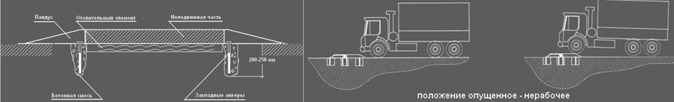 Існує два способи встановлення дорожніх блокаторів: із заглибленням у дорожнє полотно «під нуль» і без заглиблення у дорожнє полотно «накладне», з ефектом «лежачого поліцейського» (див. рис.1), тобто. примусового гальмування. Обидва способи встановлення дорожніх блокаторів мають свої переваги та недоліки. Подробиці можна дізнатися, проконсультувавшись із нашими фахівцями. Необхідність того чи іншого способу обумовлена як бажанням Замовника, так і об'єктивними причинами, з урахуванням характеру використання дорожнього блокатора і особливостей ландшафту, і т.д.