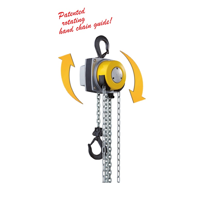 — A new type of traction chain guide with 360° rotation allows the hoist to be used in all positions and from all positions, as well as in tight spaces. When working, the operator no longer needs to be in the danger zone under or near the load, as before. — Thanks to the new patented braking system, a completely new level of operating safety and comfort during maintenance work has been achieved. This system provides significant quietness and low wear. The parts are made of high quality materials; for additional protection against corrosion, the parts are galvanized and treated with yellow chrome plating. — The closed, strong steel body with four spacer bolts is resistant to even the most severe operating conditions and allows the hoist to be used outdoors. — The guide chain and transmission unit are practically closed. This ensures protection of the internal parts of the transmission unit even in harsh outdoor conditions. — Improved quality of the load chain sprocket with four high-precision chain link pockets ensures precise movement. – The extremely low building height ensures the highest possible lifting height. — High-strength steel round link chains comply with national and international standards and current regulations and provide the required level of safety with a long service life. — Or, as standard, they are also equipped with forged hanging and cargo hooks made of aging-resistant high-alloy steel, which do not break when overloaded, but gradually unbend. The hooks are equipped with durable, reliable cages and can rotate 360° |