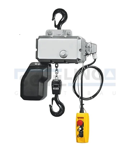 - Suitable for internal and exterior use. The Electric Chain Hoist is „splash-proof“.