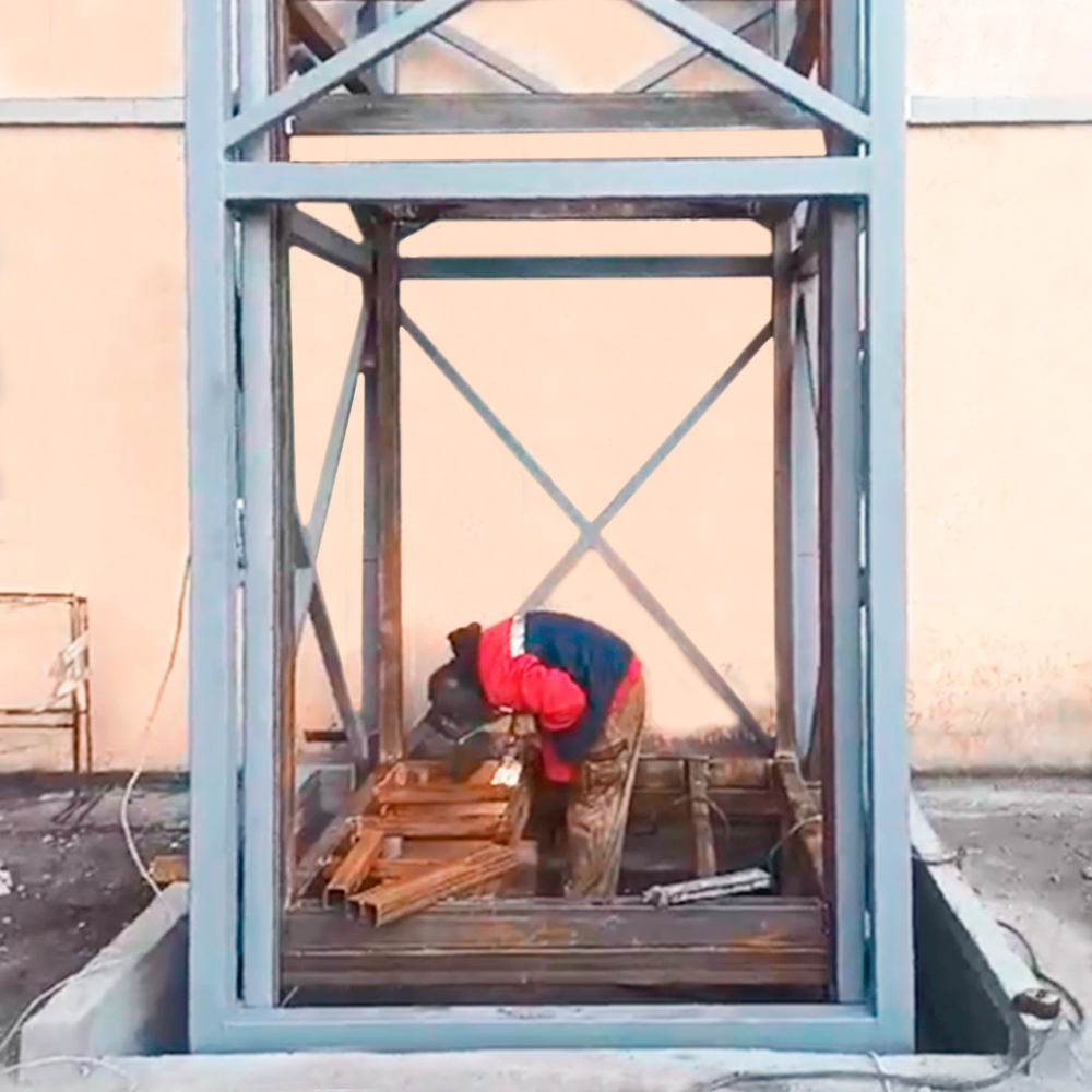 Напрямні підйомника закріплюються до стінок несучої шахти. Вантажна кабіна є закритою конструкцією, обладнаною дверима. Шахтний підйомник може мати як верхнє, так і нижнє розташування механізму підйому. При верхньому розташуванні підйомний механізм розкріплюється вгорі шахти на стіни, якщо це дозволяє здатність несучих стін, або на верхньому перекритті шахти. При необхідності можливе виготовлення та монтаж металевої конструкції для розподілу навантаження на всі стіни шахти. При нижньому розташуванні механізм монтується в приямці або за габаритами шахти. Габаритні розміри вантажних платформ, розташування вантажопідйомних механізмів (верхнє або нижнє) та кількість проміжних зупинок узгоджуються при оформленні замовлення. Шахтний підйомник обладнаний уловлювачами, які є системою з двох страхувальних тросів, розтискних пружин і клинових блоків. При ослабленні чи обриві основного троса пружини впливають на блоки, а ті своєю чергою заклинюють страхувальні троси. В результаті кабіна не падає, а висне на двох аварійних тросах. Також кожен шахтний підйомник має систему аварійних кінцевих вимикачів, які відключають живлення підйомника в аварійних випадках: - при послабленні/обриві троса