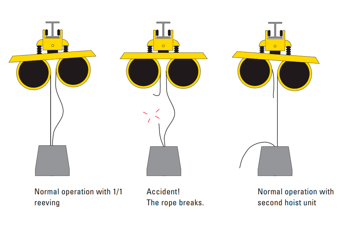 - Подъемник, редуктор, барабан и двигатель дублированы.