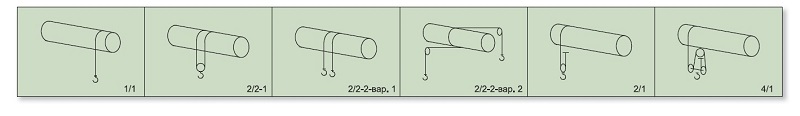 - Поліспастна система: 2/1; 4/1; 2х1; 4х2