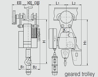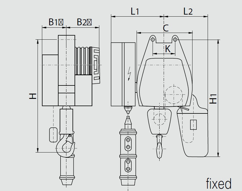 | Односкоростные | Двухскоростные | Грузо— подъ- емность | Н | Н1 | В1 | В2 | С | L1 | L2 | E | D | K | Масса нетто для Н1=3,2м | | Тип | Скорость подъема | Тип | Скорость подъема | | В011 | 8 | В011М | 8/2,4 | 125 | 407 | 518 | 100 | 142 | 167 | 225 | 207 | — | — | 55 | 29 | | В031 | 8 | В031М | 8/2,4 | 125 | 513 | 630 | 100 | 142 | 167 | 225 | 207 | — | — | 55 | 30 | | В051 | 8 | В051М | 8/2,4 | 125 | 452 | 565 | 100 | 142 | 167 | 225 | 207 | 45/55 | 45/55 | 55 | 35 | | В071 | 8 | В071М | 8/2,4 | 125 | 452 | 565 | 100 | 142 | 167 | 225 | 207 | 245 | 45/55 | 55 | 36 | | В091 | 8 | В091М | 8/2,4 | 125 | 452 | 565 | 100 | 142 | 167 | 225 | 207 | 170 | 45/55 | 55 | 38 | | В021 | 4 | В021М | 4/1,2 | 250 | 468 | 518 | 100 | 142 | 167 | 225 | 207 | — | — | 55 | 31 | | В041 | 4 | В041М | 4/1,2 | 250 | 574 | 630 | 100 | 142 | 167 | 225 | 207 | — | — | 55 | 33 | | В061 | 4 | В061М | 4/1,2 | 250 | 513 | 565 | 100 | 142 | 167 | 225 | 207 | 45/55 | 45/55 | 55 | 35 | | В081 | 4 | В081М | 4/1,2 | 250 | 513 | 565 | 100 | 142 | 167 | 225 | 207 | 245 | 45/55 | 55 | 36 | | В101 | 4 | В101М | 4/1,2 | 250 | 513 | 565 | 100 | 142 | 167 | 225 | 207 | 170 | 45/55 | 55 | 38 | | В012 | 8 | В012М | 8/2,4 | 250 | 425 | 518 | 100 | 142 | 167 | 225 | 207 | — | — | 55 | 30 | | В032 | 8 | В032М | 8/2,4 | 250 | 549 | 630 | 100 | 142 | 167 | 225 | 207 | — | — | 55 | 32 | | В052 | 8 | В052М | 8/2,4 | 250 | 470 | 565 | 100 | 142 | 167 | 225 | 207 | 45/55 | 45/55 | 55 | 34 | | В072 | 8 | В072М | 8/2,4 | 250 | 470 | 565 | 100 | 142 | 167 | 225 | 207 | 245 | 45/55 | 55 | 36 | | В092 | 8 | В092М | 8/2,4 | 250 | 470 | 565 | 100 | 142 | 167 | 225 | 207 | 170 | 45/55 | 55 | 39 | | В022 | 4 | В022М | 4/1,2 | 500 | 468 | 518 | 100 | 142 | 167 | 225 | 207 | — | — | 55 | 32 | | В042 | 4 | В042М | 4/1,2 | 500 | 597 | 630 | 100 | 142 | 167 | 225 | 207 | — | — | 55 | 36 | | В062 | 4 | В062М | 4/1,2 | 500 | 513 | 565 | 100 | 142 | 167 | 225 | 207 | 45/55 | 45/55 | 55 | 34 | | В082 | 4 | В082М | 4/1,2 | 500 | 513 | 565 | 100 | 142 | 167 | 225 | 207 | 245 | 45/55 | 55 | 36 | | В102 | 4 | В102М | 4/1,2 | 500 | 513 | 565 | 100 | 142 | 167 | 225 | 207 | 270 | 45/55 | 55 | 39 | | В013 | 8 | В013М | 8/2,4 | 500 | 516 | 553 | 125 | 155 | 280 | 280 | 235 | — | — | 100 | 59 | | В033 | 8 | В033М | 8/2,4 | 500 | 668 | 705 | 125 | 155 | 280 | 280 | 235 | — | — | 100 | 63 | | В053 | 8 | В053М | 8/2,4 | 500 | 600 | 635 | 125 | 155 | 280 | 280 | 235 | 80/90 | 80/90 | 100 | 74 | | В073 | 8 | В073М | 8/2,4 | 500 | 600 | 637 | 125 | 155 | 280 | 280 | 235 | 175 | 80/90 | 100 | 76 | | В093 | 8 | В093М | 8/2,4 | 500 | 600 | 637 | 125 | 155 | 280 | 280 | 235 | 235 | 80/90 | 100 | 81 | | В023 | 4 | В023М | 4/1,2 | 1000 | 600 | 553 | 125 | 155 | 280 | 280 | 235 | — | — | 100 | 61 | | В043 | 4 | В043М | 4/1,2 | 1000 | 752 | 705 | 125 | 155 | 280 | 280 | 235 | — | — | 100 | 63 | | В063 | 4 | В063М | 4/1,2 | 1000 | 684 | 635 | 125 | 155 | 280 | 280 | 235 | 80/90 | 80/90 | 100 | 74 | | В083 | 4 | В083М | 4/1,2 | 1000 | 684 | 637 | 125 | 155 | 280 | 280 | 235 | 175 | 80/90 | 100 | 76 | | В103 | 4 | В103М | 4/1,2 | 1000 | 684 | 637 | 125 | 155 | 280 | 280 | 235 | 235 | 80/90 | 100 | 81 |