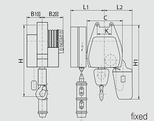 | 1-швидкісні | 2х-швидкісні | в/п | Н | Н1 | В1 | В2 | С | L1 | L2 | E | D | K | Маса нетто для Н1=3,2м | | Тип | Швидкість підйому | Тип | Швидкість підйому | | В011 | 8 | В011М | 8/2,4 | 125 | 407 | 518 | 100 | 142 | 167 | 225 | 207 | — | — | 55 | 29 | | В031 | 8 | В031М | 8/2,4 | 125 | 513 | 630 | 100 | 142 | 167 | 225 | 207 | — | — | 55 | 30 | | В051 | 8 | В051М | 8/2,4 | 125 | 452 | 565 | 100 | 142 | 167 | 225 | 207 | 45/55 | 45/55 | 55 | 35 | | В071 | 8 | В071М | 8/2,4 | 125 | 452 | 565 | 100 | 142 | 167 | 225 | 207 | 245 | 45/55 | 55 | 36 | | В091 | 8 | В091М | 8/2,4 | 125 | 452 | 565 | 100 | 142 | 167 | 225 | 207 | 170 | 45/55 | 55 | 38 | | В021 | 4 | В021М | 4/1,2 | 250 | 468 | 518 | 100 | 142 | 167 | 225 | 207 | — | — | 55 | 31 | | В041 | 4 | В041М | 4/1,2 | 250 | 574 | 630 | 100 | 142 | 167 | 225 | 207 | — | — | 55 | 33 | | В061 | 4 | В061М | 4/1,2 | 250 | 513 | 565 | 100 | 142 | 167 | 225 | 207 | 45/55 | 45/55 | 55 | 35 | | В081 | 4 | В081М | 4/1,2 | 250 | 513 | 565 | 100 | 142 | 167 | 225 | 207 | 245 | 45/55 | 55 | 36 | | В101 | 4 | В101М | 4/1,2 | 250 | 513 | 565 | 100 | 142 | 167 | 225 | 207 | 170 | 45/55 | 55 | 38 | | В012 | 8 | В012М | 8/2,4 | 250 | 425 | 518 | 100 | 142 | 167 | 225 | 207 | — | — | 55 | 30 | | В032 | 8 | В032М | 8/2,4 | 250 | 549 | 630 | 100 | 142 | 167 | 225 | 207 | — | — | 55 | 32 | | В052 | 8 | В052М | 8/2,4 | 250 | 470 | 565 | 100 | 142 | 167 | 225 | 207 | 45/55 | 45/55 | 55 | 34 | | В072 | 8 | В072М | 8/2,4 | 250 | 470 | 565 | 100 | 142 | 167 | 225 | 207 | 245 | 45/55 | 55 | 36 | | В092 | 8 | В092М | 8/2,4 | 250 | 470 | 565 | 100 | 142 | 167 | 225 | 207 | 170 | 45/55 | 55 | 39 | | В022 | 4 | В022М | 4/1,2 | 500 | 468 | 518 | 100 | 142 | 167 | 225 | 207 | — | — | 55 | 32 | | В042 | 4 | В042М | 4/1,2 | 500 | 597 | 630 | 100 | 142 | 167 | 225 | 207 | — | — | 55 | 36 | | В062 | 4 | В062М | 4/1,2 | 500 | 513 | 565 | 100 | 142 | 167 | 225 | 207 | 45/55 | 45/55 | 55 | 34 | | В082 | 4 | В082М | 4/1,2 | 500 | 513 | 565 | 100 | 142 | 167 | 225 | 207 | 245 | 45/55 | 55 | 36 | | В102 | 4 | В102М | 4/1,2 | 500 | 513 | 565 | 100 | 142 | 167 | 225 | 207 | 270 | 45/55 | 55 | 39 | | В013 | 8 | В013М | 8/2,4 | 500 | 516 | 553 | 125 | 155 | 280 | 280 | 235 | — | — | 100 | 59 | | В033 | 8 | В033М | 8/2,4 | 500 | 668 | 705 | 125 | 155 | 280 | 280 | 235 | — | — | 100 | 63 | | В053 | 8 | В053М | 8/2,4 | 500 | 600 | 635 | 125 | 155 | 280 | 280 | 235 | 80/90 | 80/90 | 100 | 74 | | В073 | 8 | В073М | 8/2,4 | 500 | 600 | 637 | 125 | 155 | 280 | 280 | 235 | 175 | 80/90 | 100 | 76 | | В093 | 8 | В093М | 8/2,4 | 500 | 600 | 637 | 125 | 155 | 280 | 280 | 235 | 235 | 80/90 | 100 | 81 | | В023 | 4 | В023М | 4/1,2 | 1000 | 600 | 553 | 125 | 155 | 280 | 280 | 235 | — | — | 100 | 61 | | В043 | 4 | В043М | 4/1,2 | 1000 | 752 | 705 | 125 | 155 | 280 | 280 | 235 | — | — | 100 | 63 | | В063 | 4 | В063М | 4/1,2 | 1000 | 684 | 635 | 125 | 155 | 280 | 280 | 235 | 80/90 | 80/90 | 100 | 74 | | В083 | 4 | В083М | 4/1,2 | 1000 | 684 | 637 | 125 | 155 | 280 | 280 | 235 | 175 | 80/90 | 100 | 76 | | В103 | 4 | В103М | 4/1,2 | 1000 | 684 | 637 | 125 | 155 | 280 | 280 | 235 | 235 | 80/90 | 100 | 81 |