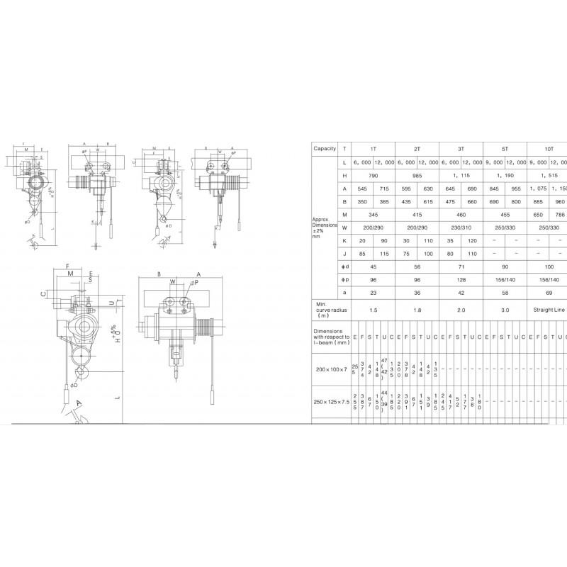 Електричний таль SH - це надійний сучасний професійний таль, в якій для підйому вантажів використовується трос. Стандартна версія SH оснащена електричним візком, тому його можна встановити на двотавр з відповідним номером та переміщати підйомник та вантажі горизонтально.