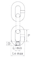 | Найменування | Діаметр перерізу ланцюга | Шаг Р | Малий внутрішній діаметр Li min | Вага | Вантажопідйомність |