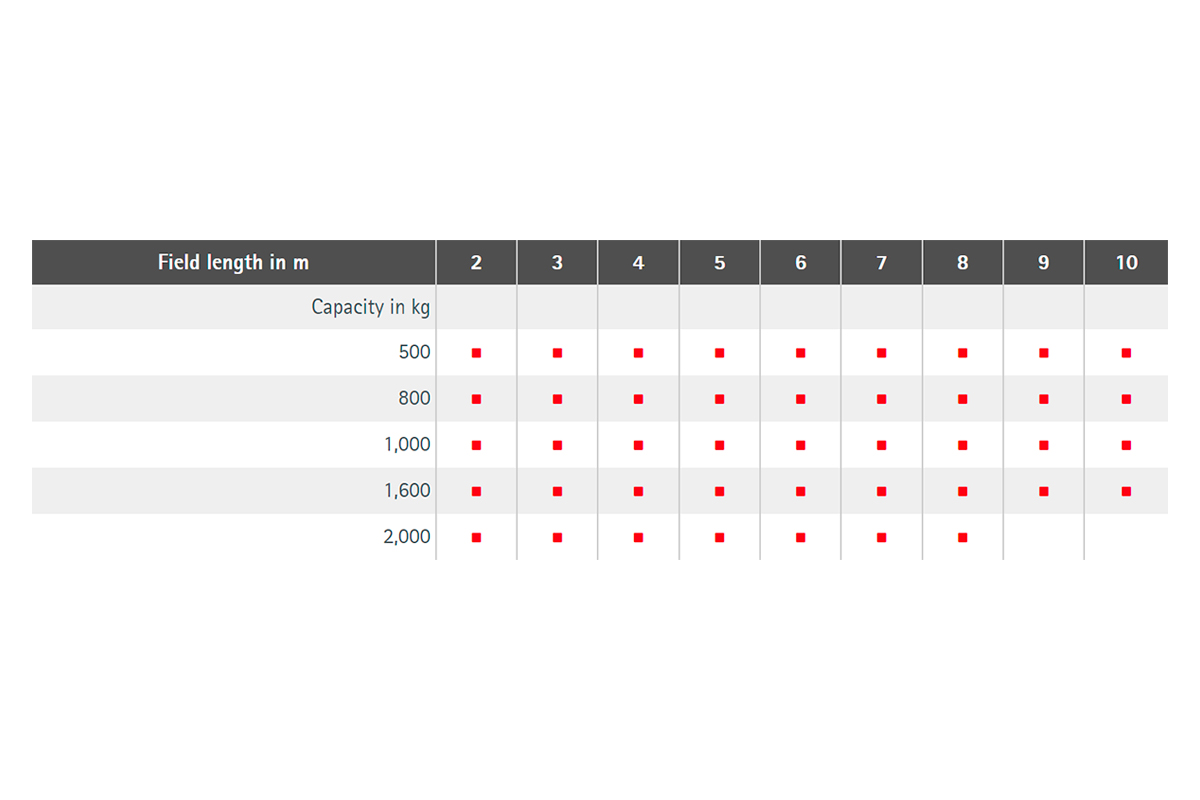 - Обмежена максимальна довжина кранової рейки, можливе лише 1 поле