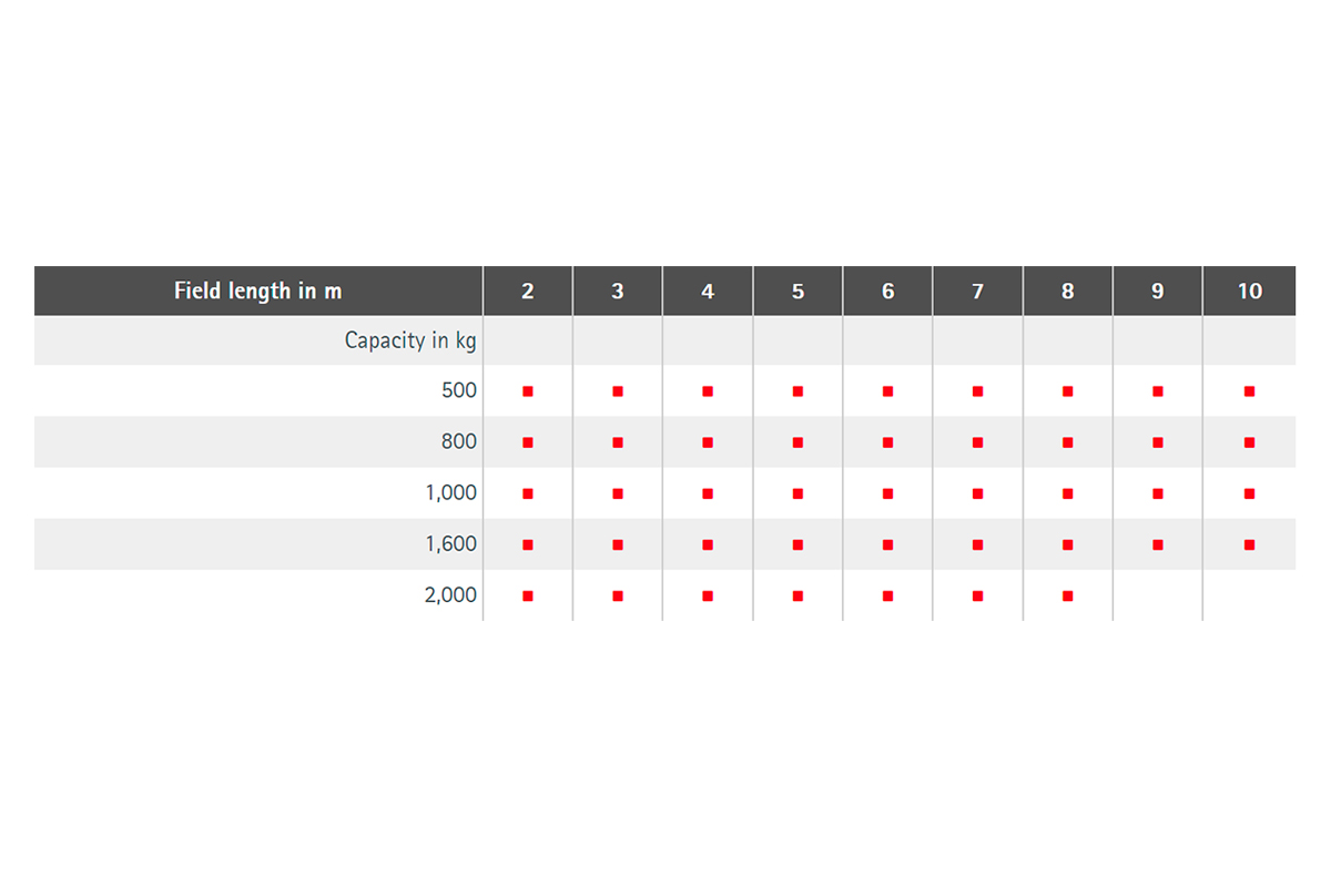- Необмежена макс. довжина кранової рейки через конкатенацію кількох полів